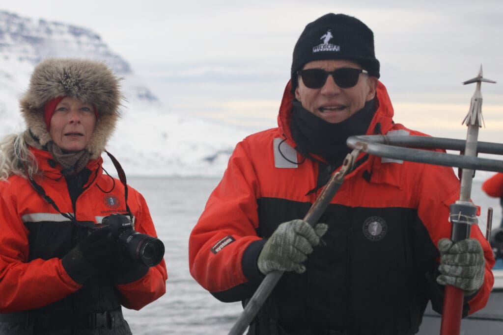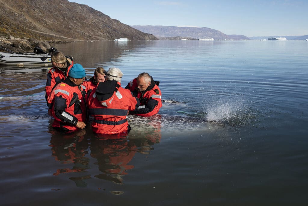 I 2023 var Susanne Ditlevsen og Mads Peter Heide-Jørgensen på ekspedition i Disco Bugten. Foto: Philippine Chambault.